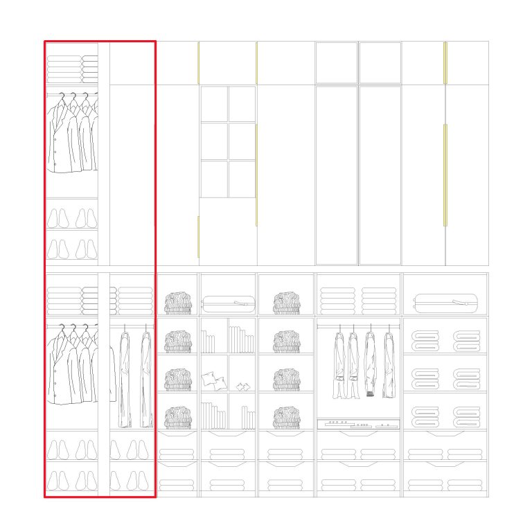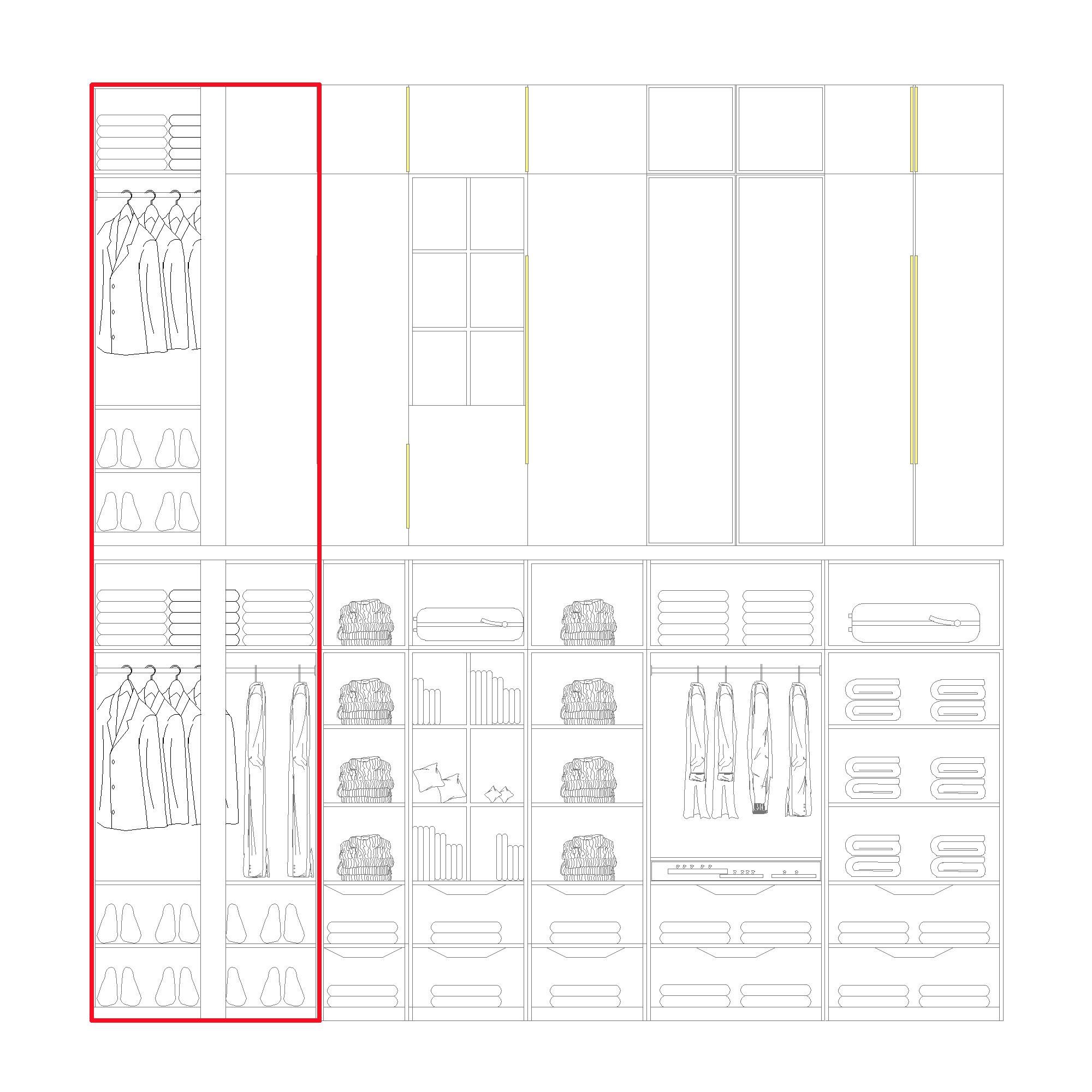 Each unit features a thoughtfully organized interior with hanging space and storage zones, making them suitable for bedrooms, walk-in closets, dressing rooms, or high-end apartments. The left (L) and right (R) configurations allow seamless pairing with other A-series modules, enabling mix-and-match installations tailored to any room size or layout.