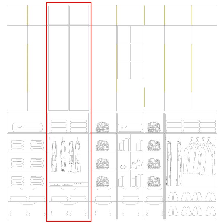 Thanks to its modular design, Cabinet B can be used as a standalone unit or easily combined with Cabinets A, C, or other sizes to create a fully customized wardrobe wall. Its standardized depth and height ensure clean alignment and a seamless built-in appearance.