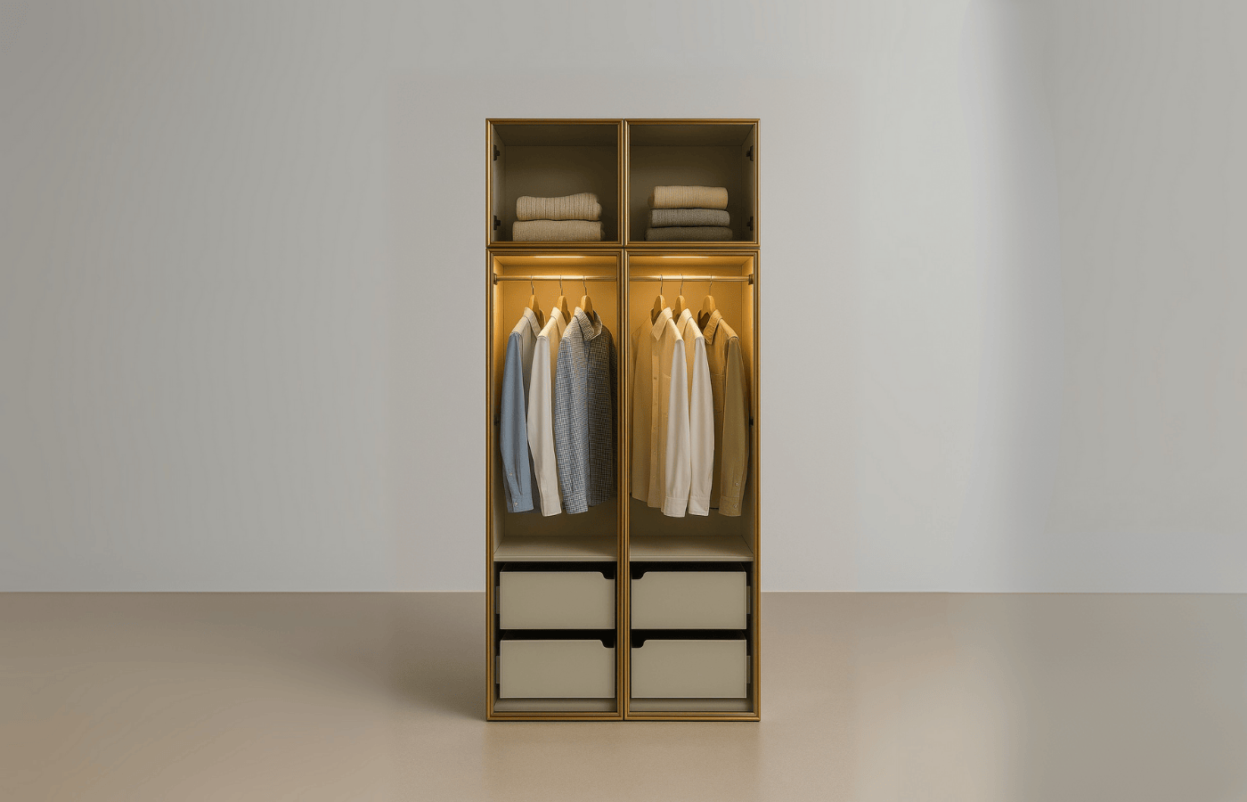 Cabinet B is part of our modular wardrobe system, designed to adapt seamlessly to any room layout. Built from premium 3/4″ furniture-grade plywood, it offers strength, stability, and long-term durability while maintaining a refined, modern look.